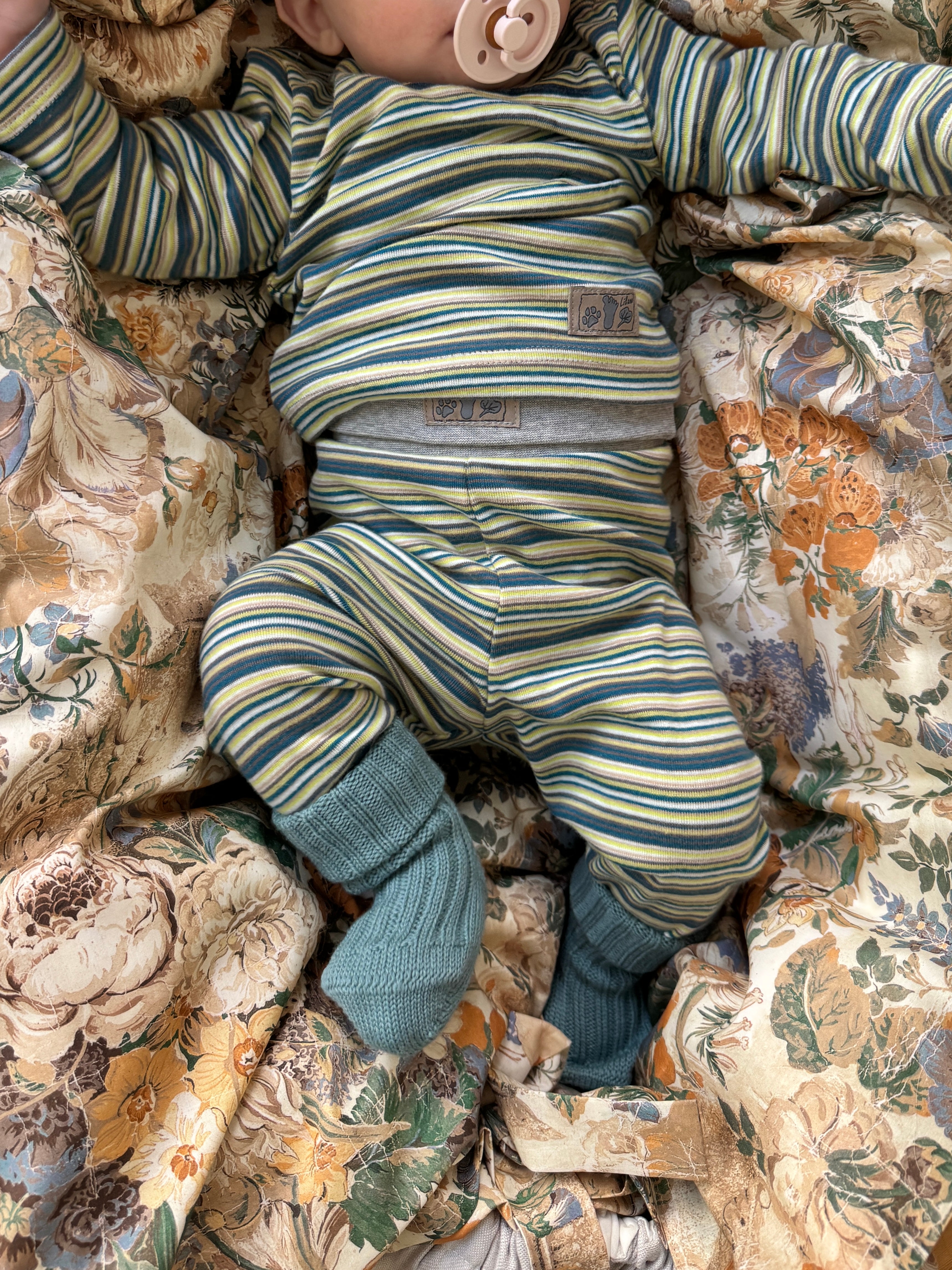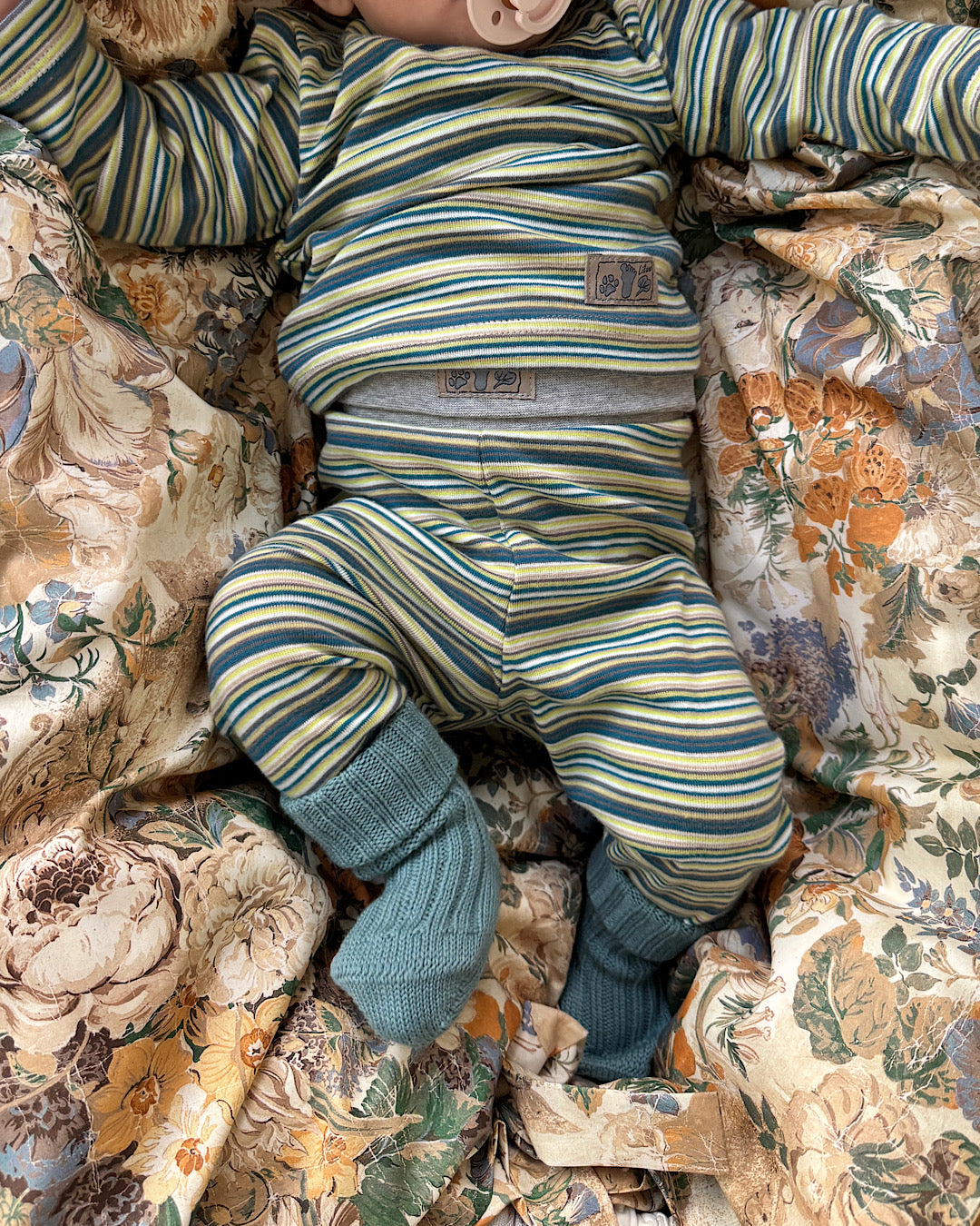 Sæt i strib petrol - 100% økologisk bomuld