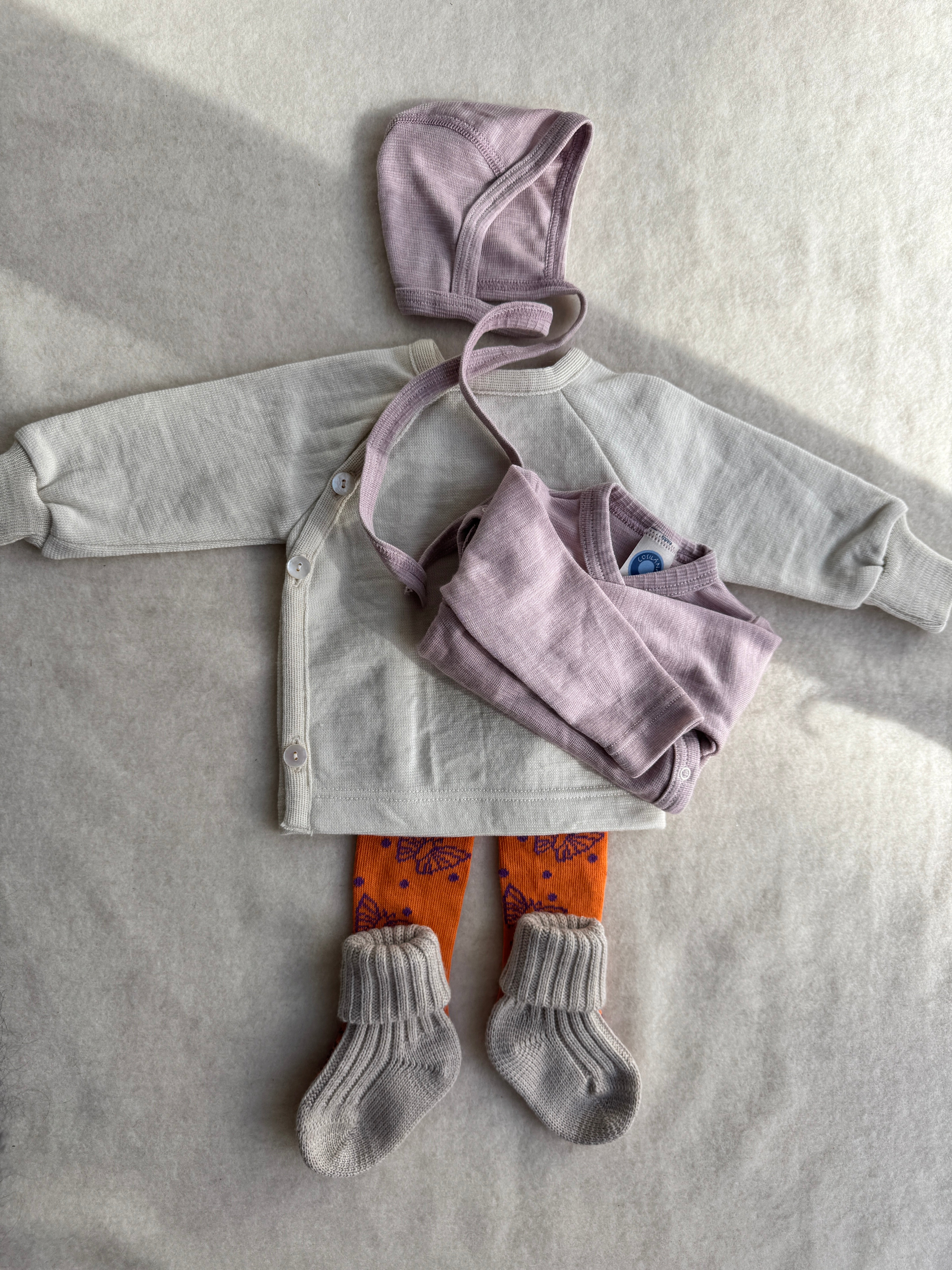Bomuldsstrømpebukser med sommerfugle - mandarin