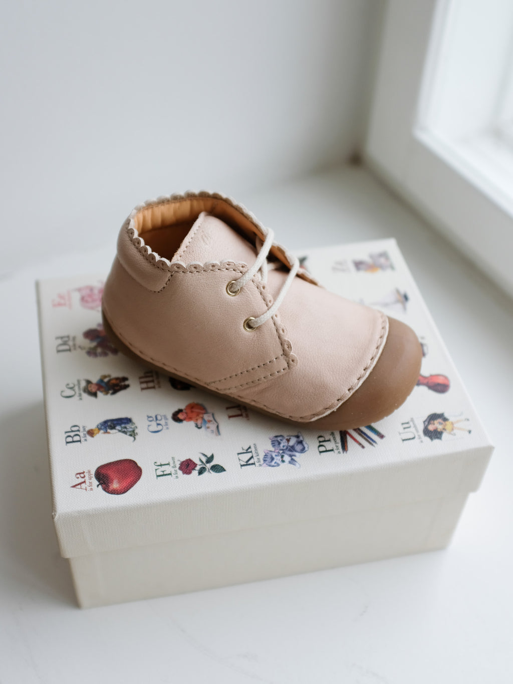 De bedste begyndersko fra det italienske mærke Øcra. De er bløde og fleksible med gummisål som dækker snuden af skoen, hvilket er helt perfekt til stadiet hvor din baby går fra kravle til gå/stå.