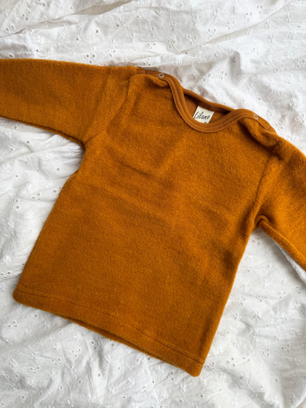Blusen er lavet i 100% økologisk børstet uld og er perfekt hele året rundt.