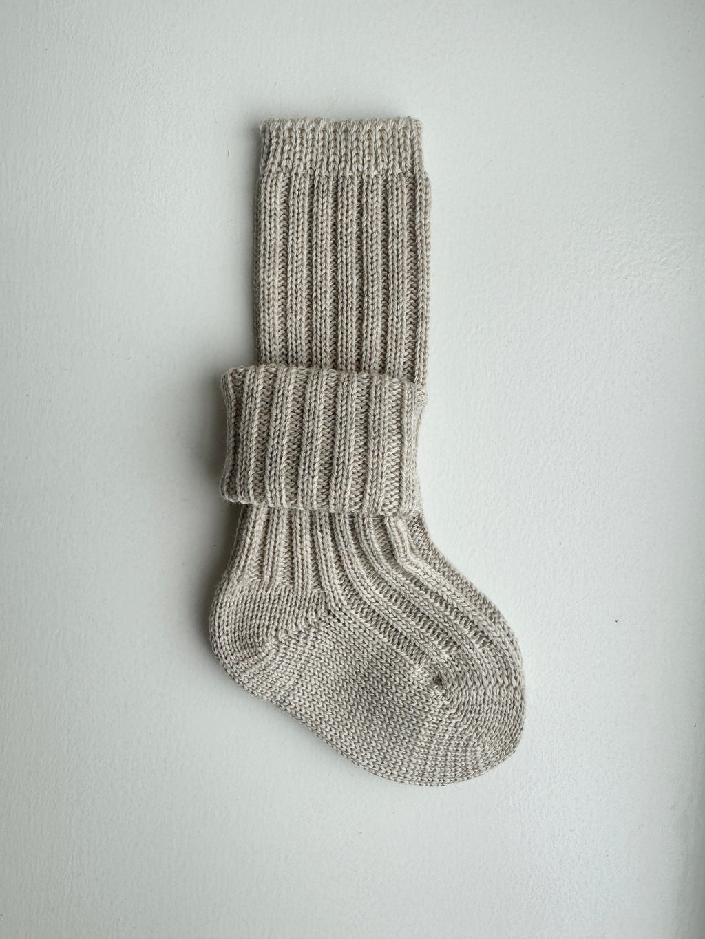 Favorit uldsokken - pga. ribben bliver den holdt fast på barnets fod og holder derved baby/barn dejlig varm om både ben og fod. Bruges fra nyfødt udover en bomuldstrømpe i stedet for hjemmesko.