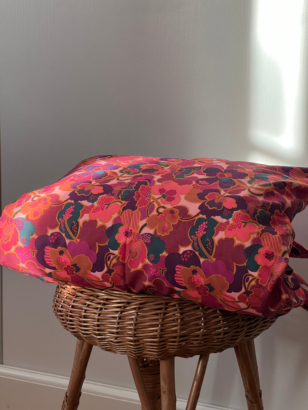 Blomst Liberty dynebetræk er lavet efter dansk standard mål på 70 x 100 cm i babydyne og 100 x 140 cm. Dynebetrækket har bindebånd som giver en fin ekstra detalje.