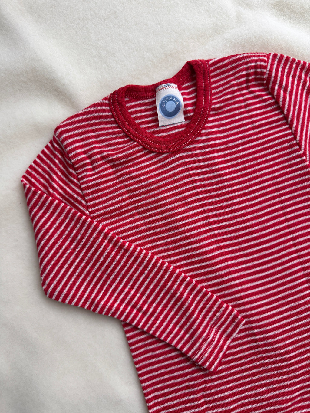 Bluse uld/silke - rød strib