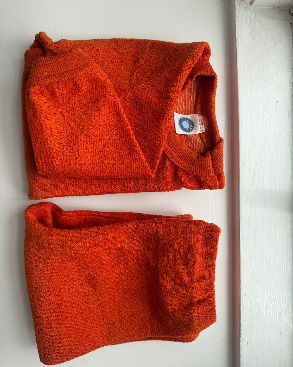For wool/terry, only the finest natural Merino sheep's wool is used . This quality is very temperature-regulating and has an antibacterial effect due to the residual wool fat content. It is therefore sufficient if you air your woolen clothes often and only occasionally wash them with a gentle wash either by hand or on max. 30° on wool programme.