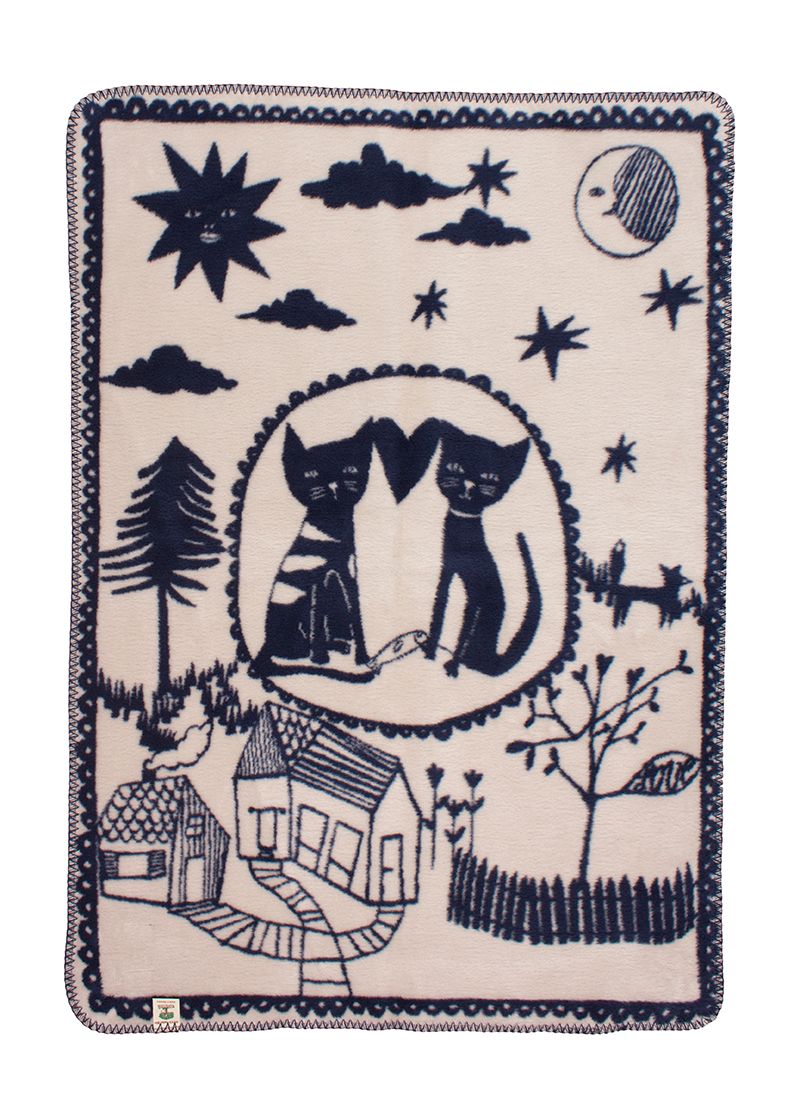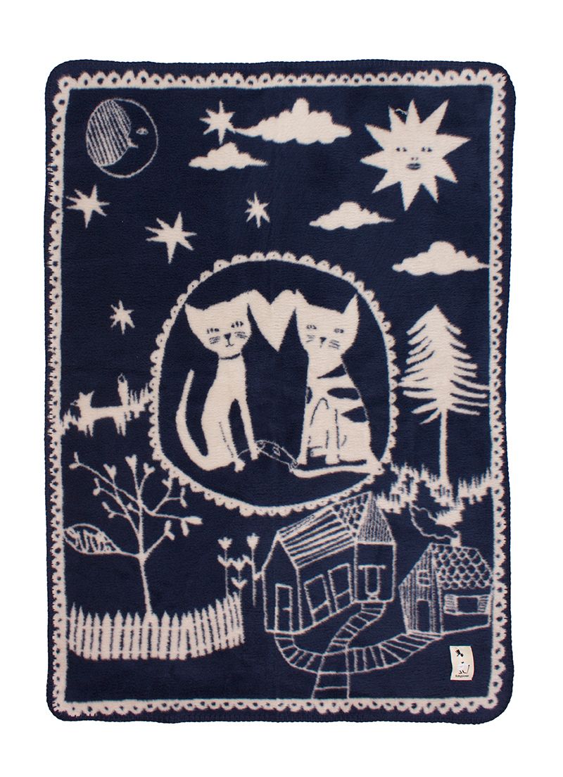 A luxury baby blanket with cats in dark blue/beige. This ultra-soft organic cotton blanket will wrap your little one in cozy soft warmth and will hopefully be your baby's security blanket for many years to come. This rug is one of the softest rugs you will find. Generous in size, which can be used up to 5 years of age. Fold it up and use it as a blanket for tummy time on the floor, for a cot and pram blanket. Even after washing, the rug will still be as soft as when you bought it. This brushed GOTS-certified organic cotton blanket is completely free of harmful chemicals and will therefore provide a reassuringly safe environment for your baby.