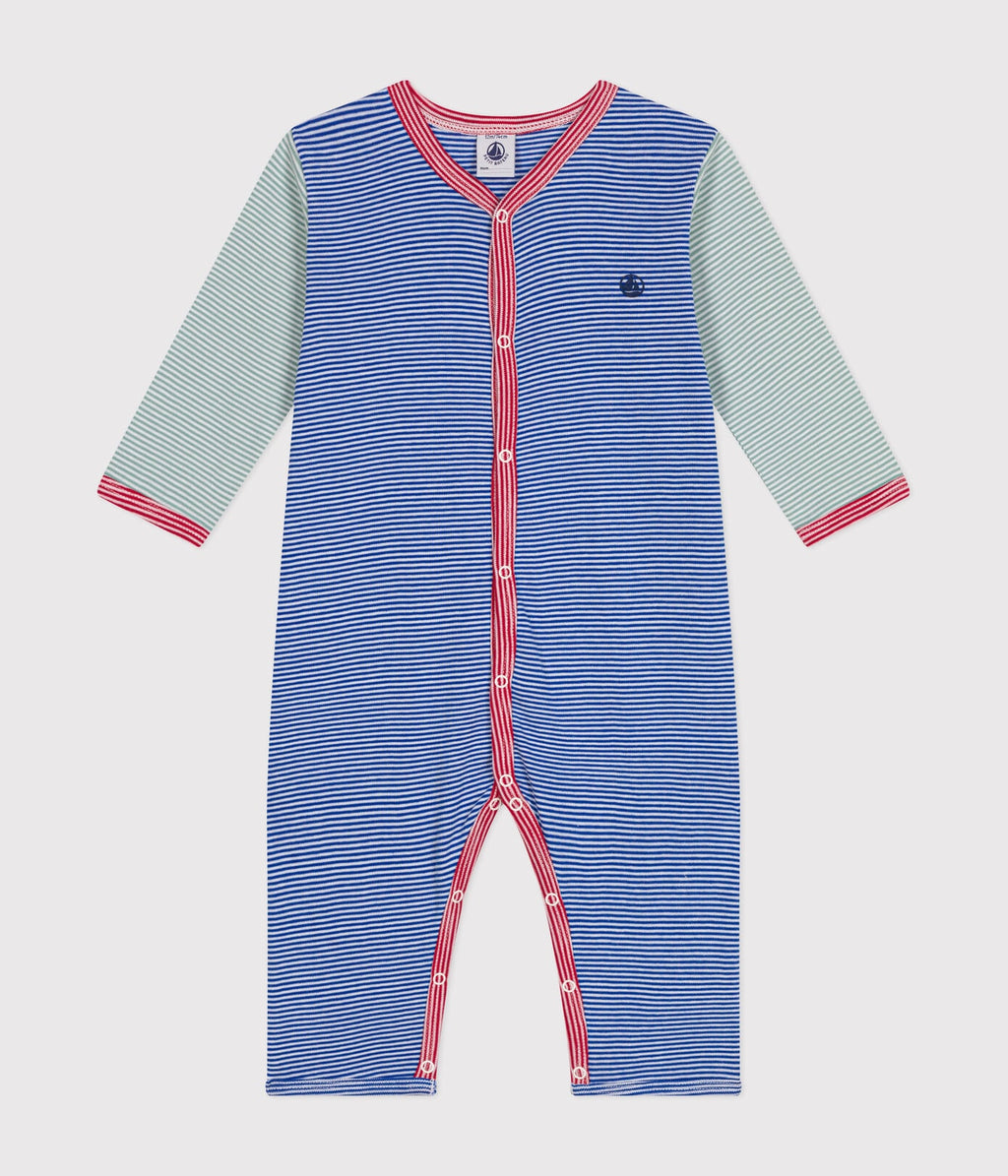 This pajama opens with press studs in the front and in the crotch and is made of 100% organic cotton OEKO-TEX ®.