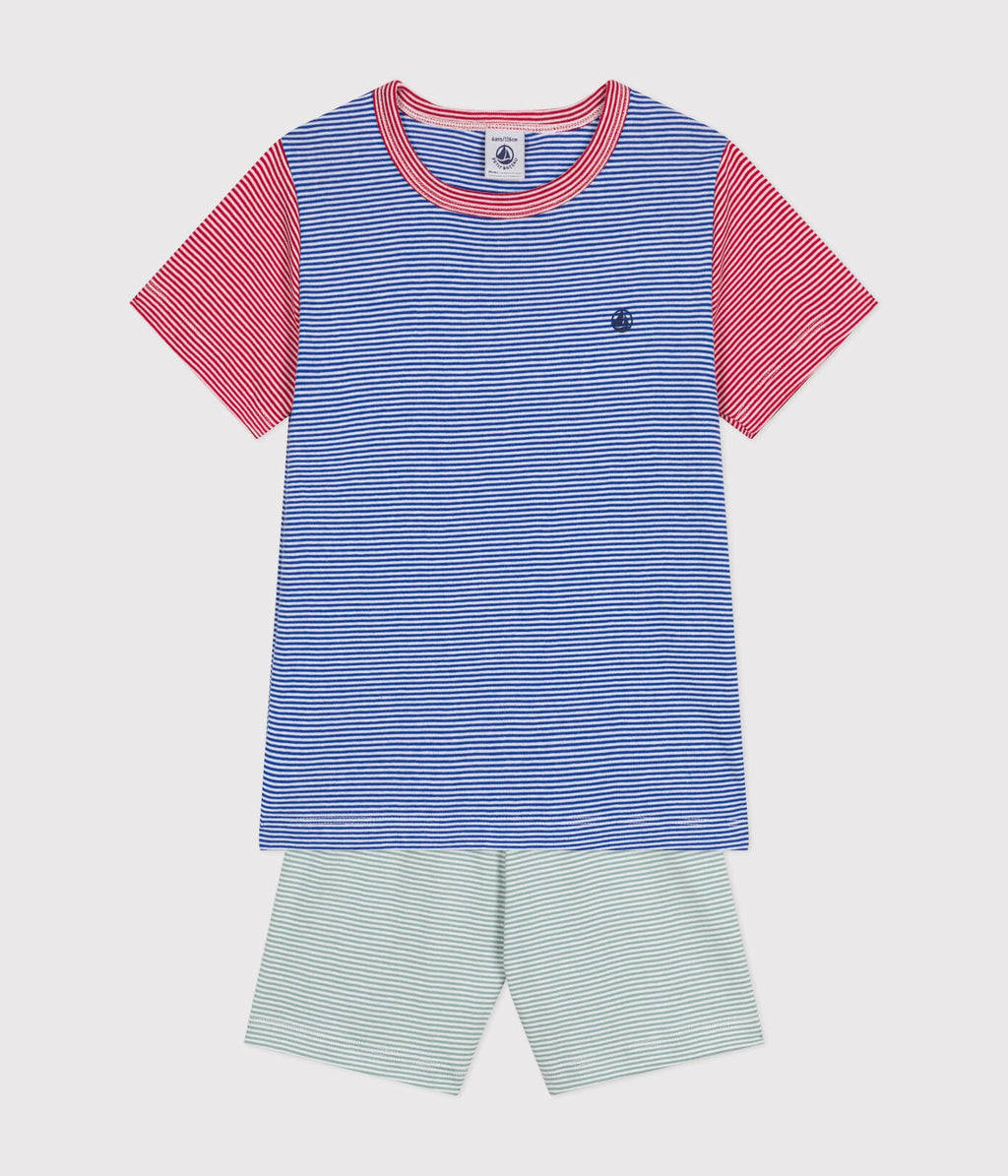 pajamas are made of 1x1 striped rib, Petit Bateau's iconic material, which guarantees perfect freedom of movement. Neckline, lower sleeves and legs are made in rib with elastic at the waist. Made