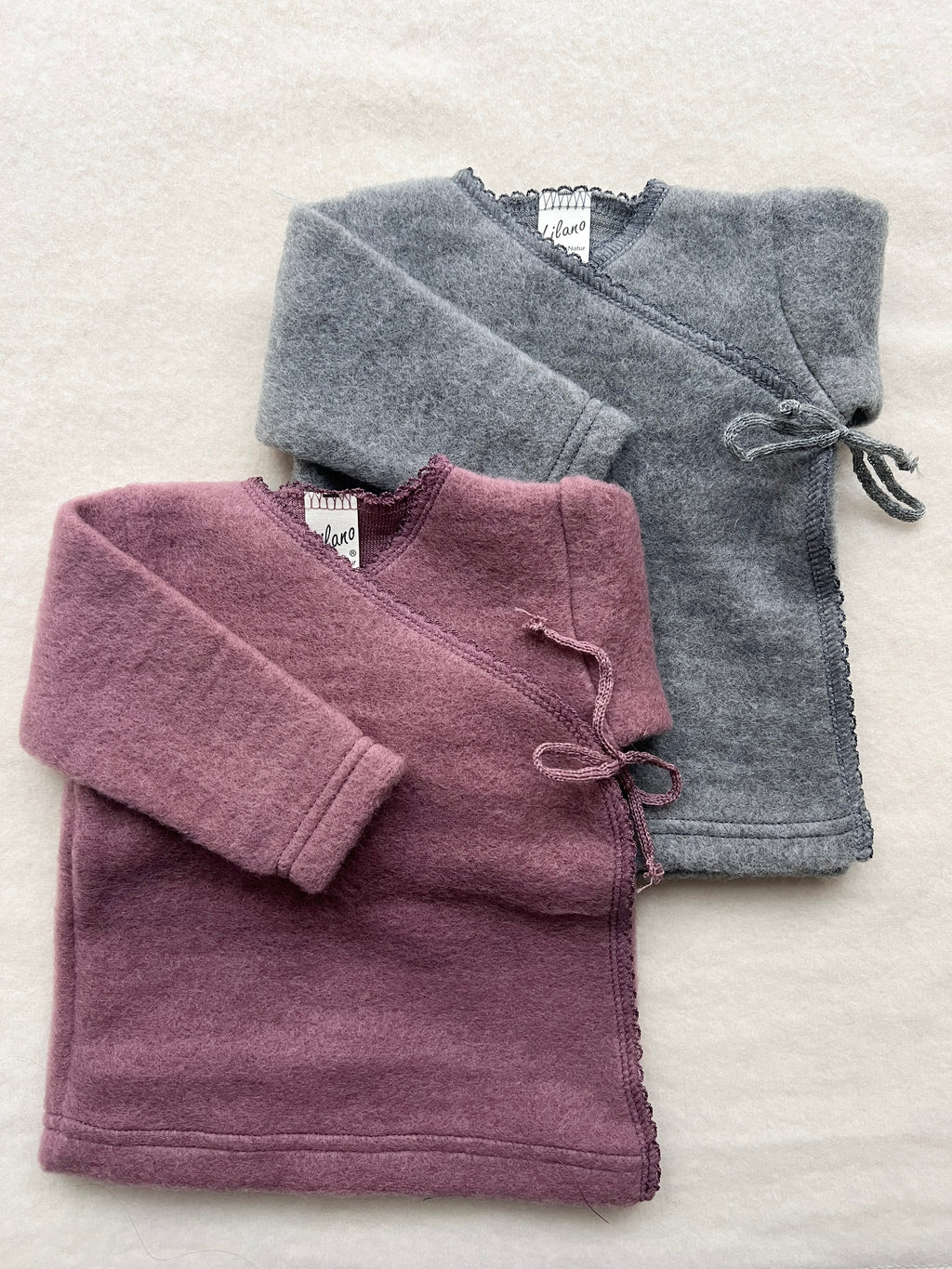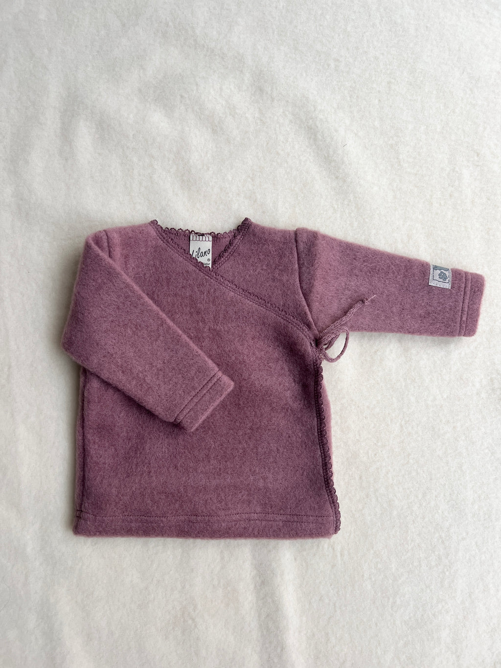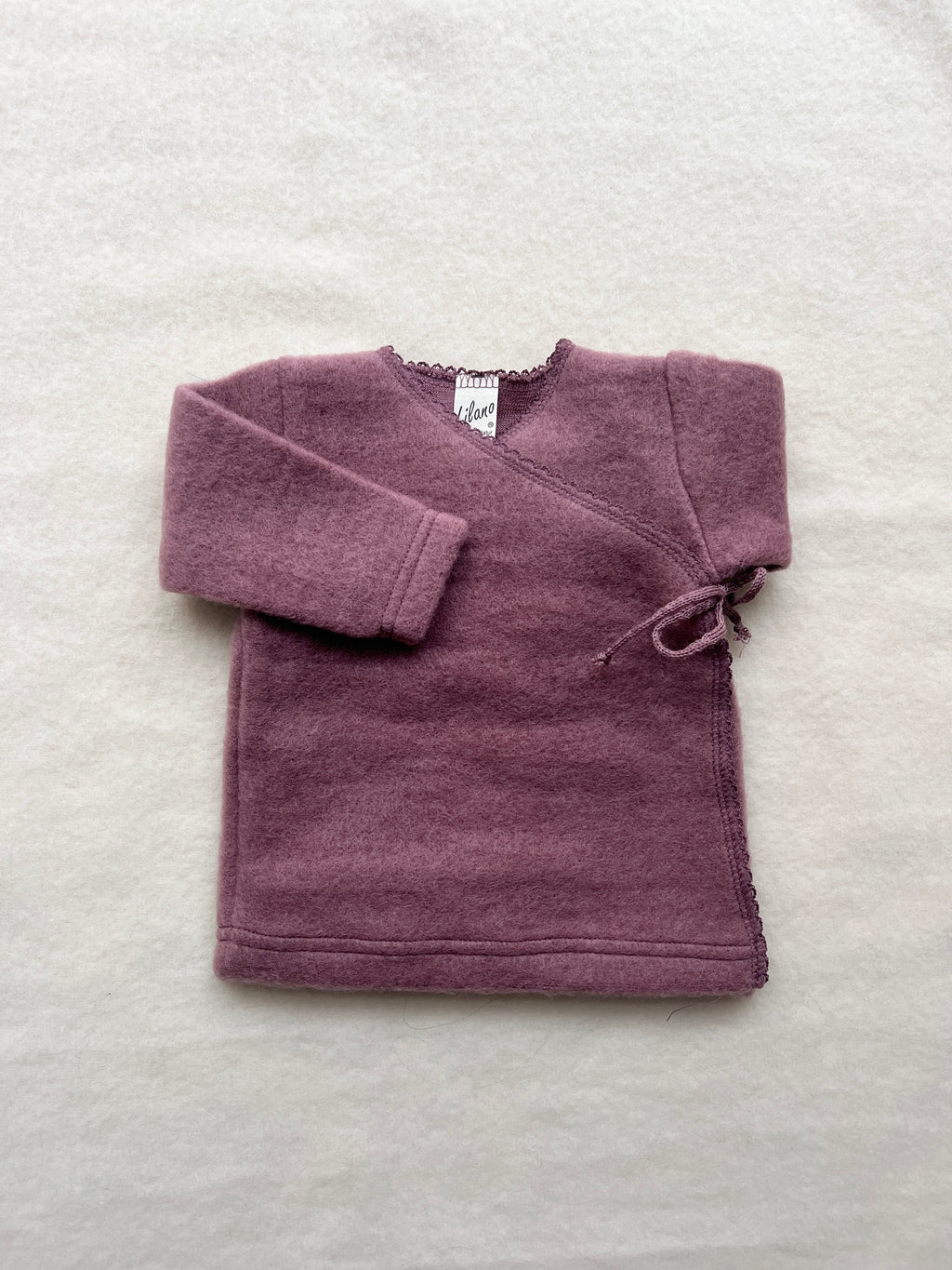 Blusen er lavet i 100% økologisk uldfleece og har bindebånd i siden og de fineste detaljer på kanten. Sød og praktisk hele året rundt.