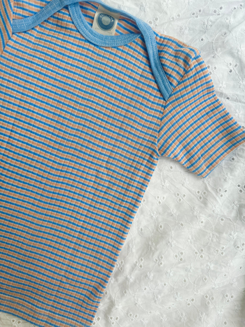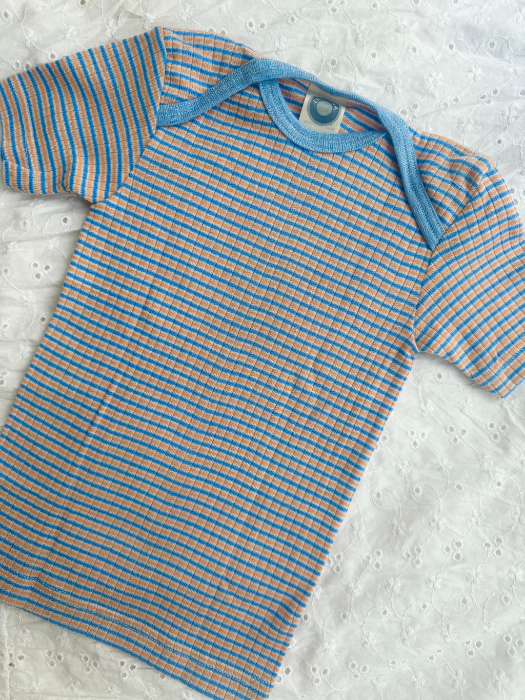T-shirt med amerikansk lukning, bomuld/uld/silke