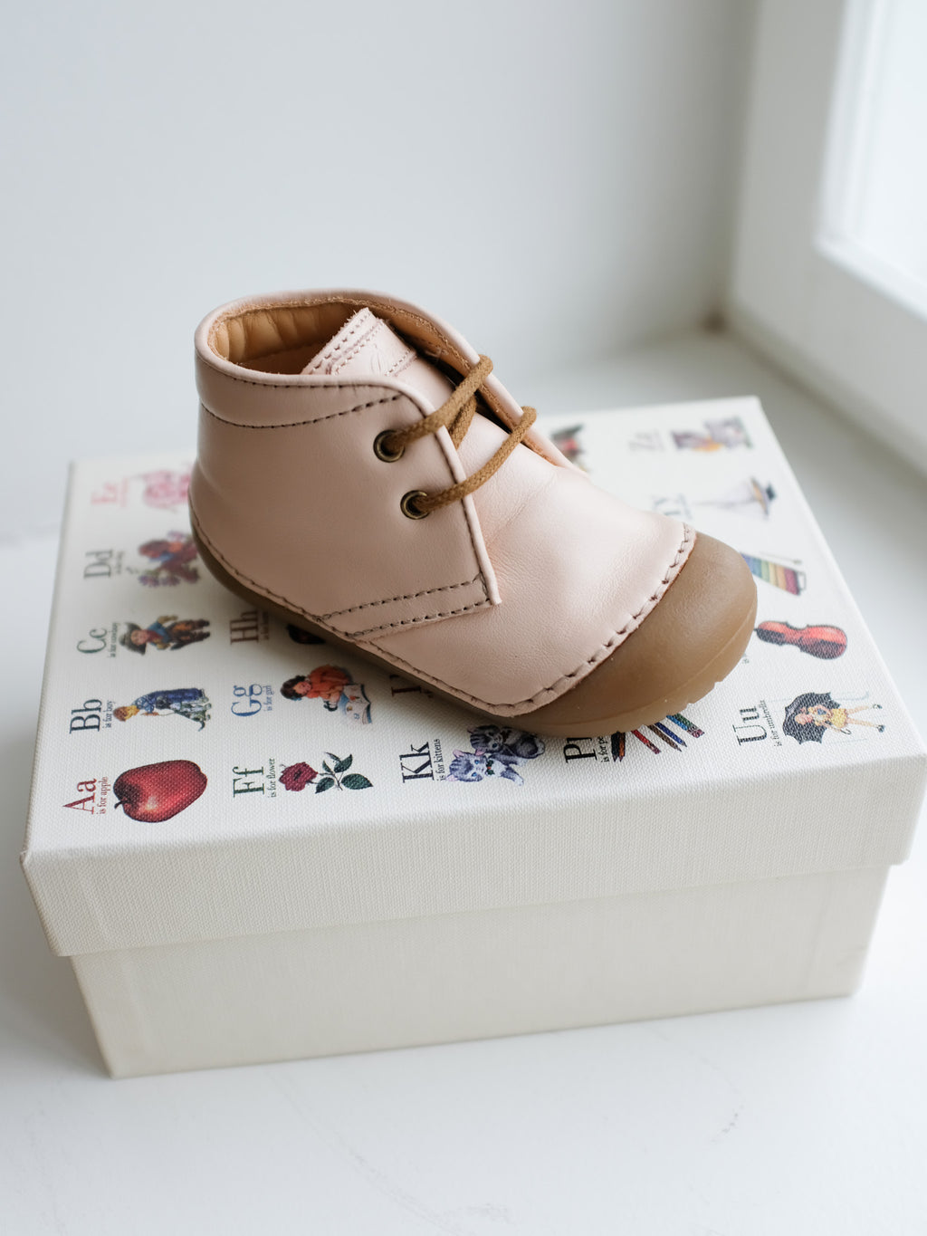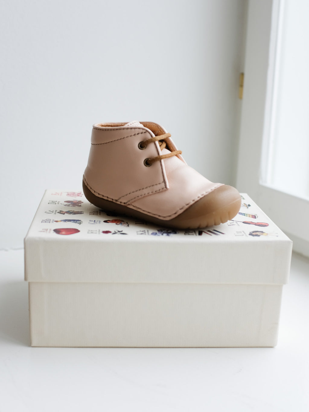 De bedste begyndersko fra det italienske mærke Øcra. De er bløde og fleksible med gummisål som dækker snuden af skoen, hvilket er helt perfekt til stadiet hvor din baby går fra kravle til gå/stå.
